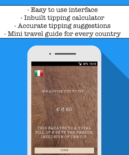 - Inbuilt algorithm has knowledge of every country's tipping custom