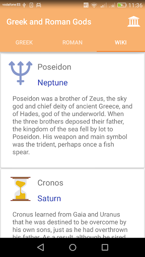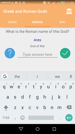 หลังจากการตายของจักรวรรดิกรีกชาวโรมันเปลี่ยนชื่อของเทพเจ้ากรีกเป็นของตัวเองแอพนี้ให้คุณฝึกชื่อที่เทียบเท่ากับเทพเจ้าของอารยธรรมทั้งสอง