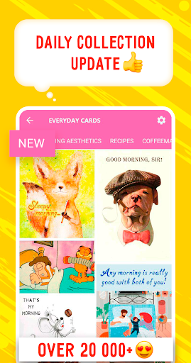 ทักทายทุกวันและ การ์ดสำหรับทุกคนและทุกโอกาส: อรุณสวัสดิ์, ราตรีสวัสดิ์, หายดี, ขอขอบคุณที่คิดถึงคุณ, ขอโทษ, คิดถึงคุณการ์ด, การเดินทางที่มีความสุข, สร้างแรงบันดาลใจ, การ์ดอารมณ์, การ์ดตลก, งานแต่งงาน, วันครบรอบ, จบการศึกษา, Christenings