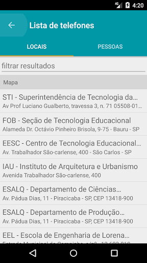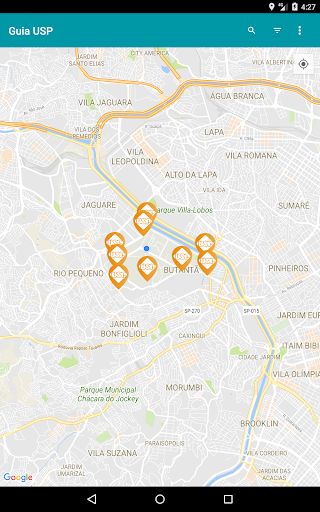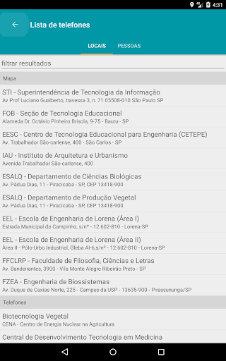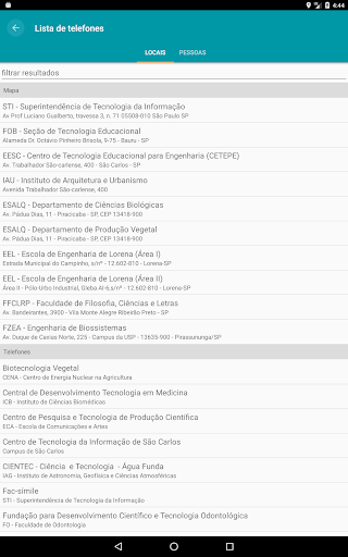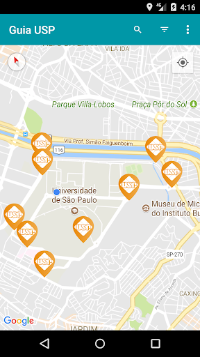 Agora ficou mais fácil se localizar na USP. Este guia o ajudará a encontrar as várias escolas, faculdades e institutos da Universidade de São Paulo, além de bibliotecas, restaurantes, bancos e muito mais. Também é possível localizar as rotas e as posições dos dois circulares da Cidade Universitária, em São Paulo, além de consultar os telefones de pessoas e de locais da USP.