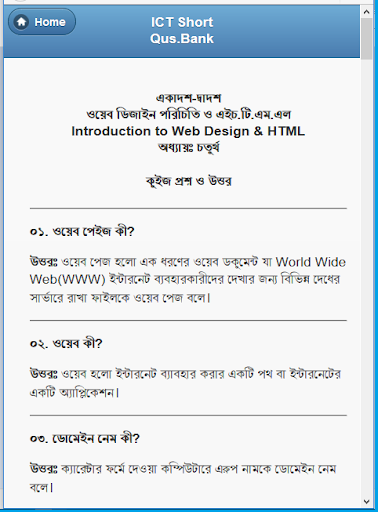 অ্যাপসটিতে সকল অধ্যায়ের জ্ঞান ও অনুধাবনমুলক প্রশ্ন ও তার উত্তরগুলো দেওয়া আছে।