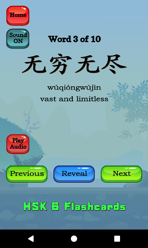 HSK 6 Chinese Flashcards allows you to quickly blaze through hundreds of cards. No need to flip each card to see the answer. If you recognize it, tap Next. If not, then flip the card and study the answer. Think you've mastered the current card pack? Do it again, just to be sure, then tackle the next pack of flashcards. Each time you start, the cards will be once again randomized.