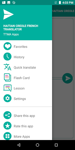 แอปพลิเคชั่นฟรีนี้สามารถแปลคำและข้อความจาก Rautian Creole เป็นภาษาฝรั่งเศสและจากฝรั่งเศสไปยังครีโอลชาวเฮติ แอปพลิเคชั่นที่ดีที่สุดสำหรับการแปลที่ง่ายและรวดเร็วซึ่งสามารถใช้งานได้เหมือนพจนานุกรม หากคุณเป็นนักศึกษานักท่องเที่ยวหรือนักเดินทางมันจะช่วยให้คุณเรียนรู้ภาษาไห่เซียนครีโอลหรือภาษาฝรั่งเศส! - ผู้ใช้สามารถสร้างบทเรียนของตัวเองและเพิ่มคำลงในบทเรียนเพื่อเสริมบทเรียนที่นอกเหนือจากบทเรียนตัวอย่างที่ออกแบบมาก่อน