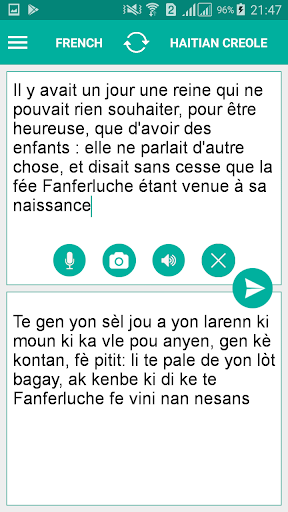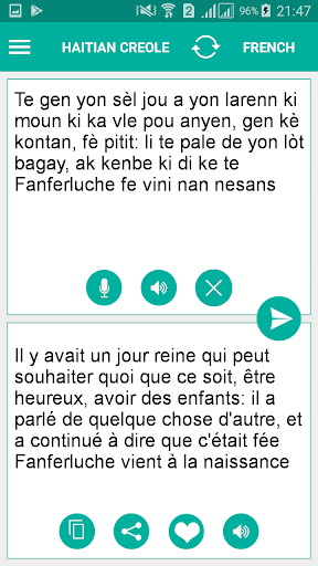 ฟีเจอร์โบนัส - เรียนรู้และฝึกฝนการออกเสียงในขณะที่ผู้แปลภาษาเฮติครีโอลฝรั่งเศสมีคุณสมบัติในการสร้างเสียง ฟังข้อความที่แปลและสื่อสารกับเพื่อนแฟนแฟนสมาชิกครอบครัวหรือนักท่องเที่ยวได้อย่างสะดวกสบาย