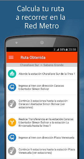 - Obtener la ruta que debes seguir para llegar a tu destino, mezclando los sistemas Metro Caracas, Metro Los Teques y Ferrocarril Valles del Tuy.