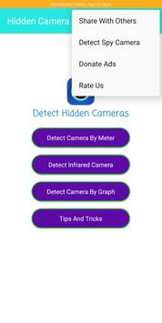 you Can Easily Detect Hidden Camera open Hidden Camera Detected, App and Move it near Suspected device and Hidden Camera will be detected by Hidden camera detector, app.Hidden Camera Detection. Hidden Camera Detector, Detects Hidden Camera And Detect Spy Camera And Microphones using your Smartphone. With hidden camera finder and hidden camera detector x you can find hidden cameras and locate trasnparent spy camera. Hidden camera detector x has built in anti camera protection. propane detector , propane leak detector. This spyware detector and spy cam detector