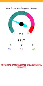 Your phone should have a magnetic sensor in it to use Hidden Camera Detector, for finding Hidden Camera, and to detect magnetic activity field and magnetic flux or magnetic radiations by a process of simple search scan using this spy camera detect app.