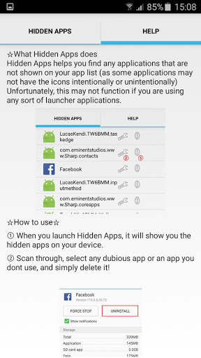 allows you to find hidden or malicious applications(hidden , spyware removal for android , malware removal for android), games with or without an icon in the application list or in the android phone.