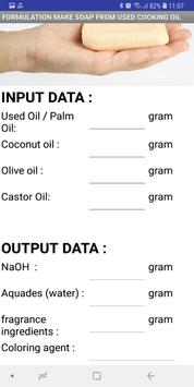 With this application you can make formula / recipe for bar soap from used cooking oil without doing chemical calculations.