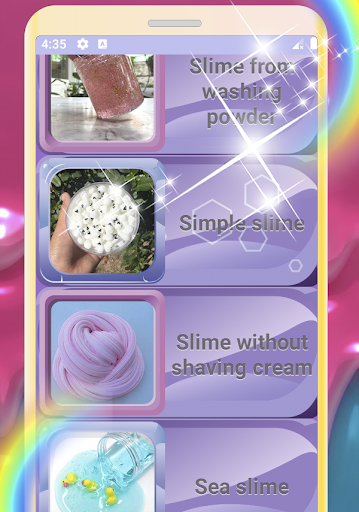 application in which there are many recipes for how to make a slime at home and how to make a fluffy slime. All slime recipes are simple and straightforward to prepare.