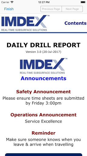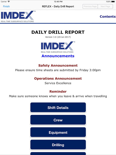 IMDEX Mobile includes an example project for drilling shift reports, but can be scaled across a business with the addition of other forms (eg. pre-start checks, audits, maintenance, safety).