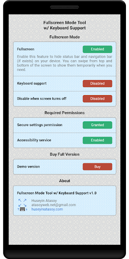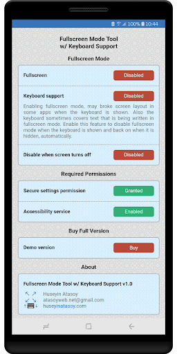 มีแอพมากมายที่ให้บริการโหมดเต็มหน้าจอในตลาด แต่การเปลี่ยนโหมดเต็มหน้าจอในอาจทำลายเลย์เอาต์หน้าจอในอุปกรณ์บางอย่าง (ตัวอย่างเช่นบน Samsung Note 8 หรือ S8) เมื่อแป้นพิมพ์ปรากฏในบางแอพ นอกจากนี้บางครั้งแป้นพิมพ์ครอบคลุมข้อความที่กำลังเขียนในโหมดเต็มหน้าจอ