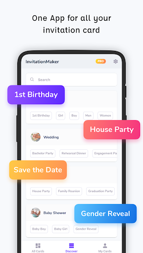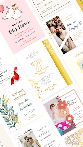 เป็นแอพผู้สร้างคำเชิญที่ใช้งานง่ายที่ให้คุณแก้ไขคำเชิญมืออาชีพการ์ดอวยพร ตามความต้องการของคุณ เพียงแตะการ์ดทั้งหมดหรือเลือกหมวดหมู่จากการค้นพบและเริ่มแก้ไขเทมเพลตทันที คุณสามารถสร้างการ์ดเชิญได้รับทุกโอกาส