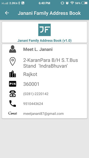 This App Contains Address Information of All The Janani Parivar Residing Around the World.