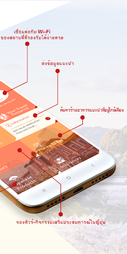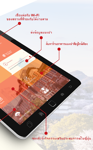 เราจะช่วยเหลือการท่องเที่ยวของท่านด้วยเนื้อหาสาระ อาทิ "ค้นหาร้านอาหารแนะนำที่อยู่ใกล้เคียง", "ซื้อของฝากที่ได้รับความนิยมในญี่ปุ่น" ฯลฯ ที่จะทำให้นักท่องเที่ยวชาวต่างชาติที่มาเยือนญี่ปุ่นได้ท่องเที่ยวไปในญี่ปุ่นอย่าง "สนุกสนานยิ่งขึ้น!" "สะดวกสบายยิ่งกว่าเดิม!"