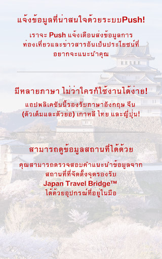 คุณสามารถตรวจสอบคำแนะนำข้อมูลจากสถานที่ที่จัดตั้งจุดรองรับ Japan Travel Bridge™ ได้ด้วยอุปกรณ์ที่อยู่ในมือ