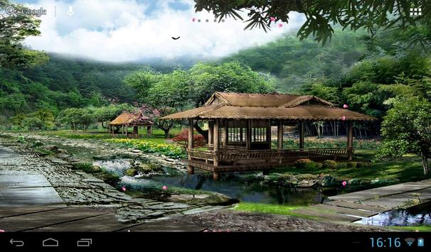 Free live wallpaper - Japanese garden. This live wallpaper is the perfect choice! - Animated falling cherry blossoms - Animated birds - The effect of water waves - Support for HD tablets -The sun's rays and glare -The clock on the screen