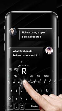 Download Jet Black Keyboard for android with glass black keys, crystal apple background, fashion font and digital sound.