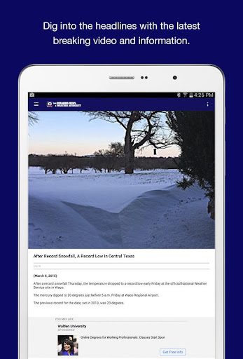 มันเป็นประสบการณ์ข่าวเท็กซัสตอนกลางที่คุณรอคอย!จับข่าวกีฬาและสภาพอากาศได้ทุกที่ด้วยแอป KWTX สำหรับ Androidแบ่งปันเนื้อหาทางอีเมลข้อความ Twitter หรือ Facebookไม่ว่าจะเป็นสภาพอากาศที่รุนแรงหรือสปอร์ตแอพ KWTX สำหรับ Android ช่วยให้คุณทราบในขณะที่คุณกำลังเดินทาง!