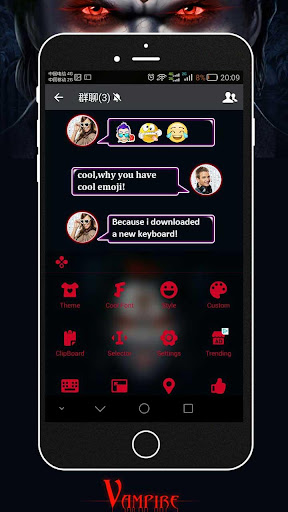 • ดาวน์โหลดธีมคีย์บอร์ด Vampire จาก Play Store และเปิด ;
