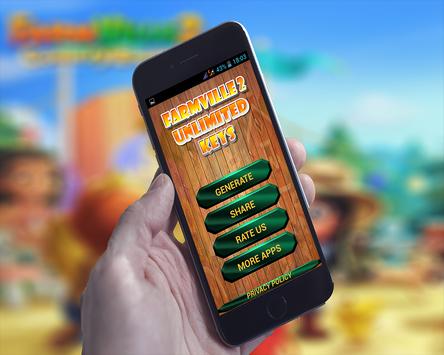 This app is not a hack for farmville 2. it does not give keys or resources to your farmville 2 account and does not connect to any server.