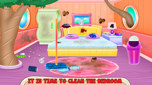 How cool would it be to have a tree house? We all dream about it at least once and to make this cleaning game even better we come up with a sweet kitty that lives in a wonderful tree house. The thing is that her beloved tree house is now really destroyed and the garbage is spread all over the house. Kitty Kate didn't make any cleaning since she moved into the house and everything is overused and the walls are all stained with grease. Your job will be to assist the cleaning and learn how to do it by following the presented instructions. Use the stair to move in each part of the tree house, but to be possible to go into the other rooms you will have to clean first the kitchen. Be careful, you have a lot of work to do. Throw the garbage, clean the floor and wipe the dust, then move to the walls that need a serious rubbing. The sink and the gas cooker are too dirty and need to be restored. The fridge is fulfilled with rotten food that you will get rid of. Next, you will go to the bedroom and here is the same mess. Deal with all that trash and try to make the room look like the one you could live in. Swipe the dust, have the floors cleaned up and handle the rest of the disorder. Move to the bathroom and save your strength because here you will get a little bit more work to do. Clean the toilet, the bating tube has to be disinfected and the sink as well. Don't miss the floors and the rest of the bathroom. Now that you have finished your work, our beloved Kitty Kate could dance around in her new fresh home you have given to her.