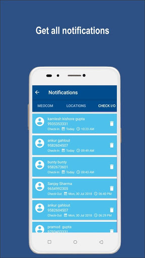 1. ตรวจสอบ - เข้า / เช็คเอาท์ - รับการอัปเดตสดจากพนักงานดูที่ตั้งแบบเรียลไทม์และเวลาเดินทางมาถึงและการออกเดินทาง 2. การติดตามขนาดเล็ก - ติดตามการเคลื่อนไหวของพนักงานทุกคนสมาชิกในครอบครัวไดรเวอร์ เด็กชายจัดส่งที่สถานที่ตั้งระยะไกลทีมโครงการผู้ให้บริการทางการแพทย์แบบเรียลไทม์