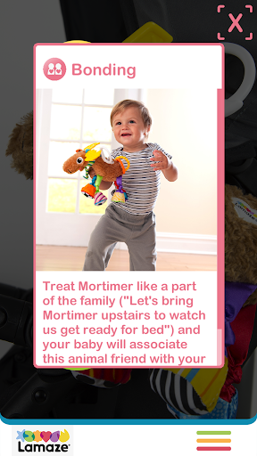 •ใช้กล้องของอุปกรณ์ของคุณเพื่อตรวจจับ เครื่องหมายเป้าหมายรวมอยู่กับของเล่น Lamaze ของคุณ เปิดใช้งานวิดีโอหรือข้อความที่มีรายละเอียดว่าคุณสมบัติของของเล่นมีประโยชน์ต่อเด็กและวิธีการใช้ของเล่นเพื่อให้เด็กมีส่วนร่วมและทำให้เวลาเล่นพิเศษสำหรับคุณทั้งคู่