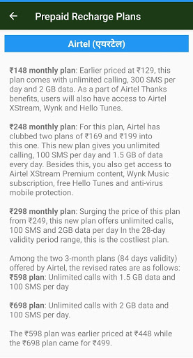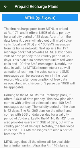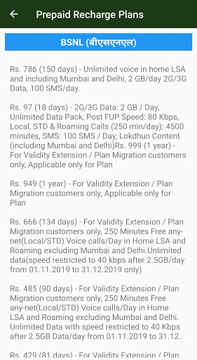 Before you recharge your prepaid mobile, find the best recharge plan/pack for your exact need. Latest Prepaid Recharge Offers 2019 app is the fastest and easiest way to find the recharge plan you need and buy it through our online recharge partners. Browse through the common benefit categories - Topup, SMS, Data (4G/3G/2G), Local, STD, ISD. Or try the powerful full-text search feature to find recharge plans matching your specific need or for price/plan comparison.