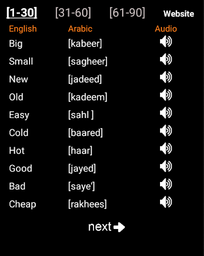 The following Arabic words are designed to help you improve your speaking, reading, and writing. Each lesson offers vocabulary components such as: travel words, food, animal names, languages, directions, people, survival, colors, weather, places, and shopping ... etc. We also added grammar tips to include: adjectives, plural, prepositions, feminine, numbers, negation, pronouns, questions, determiners, nouns, verbs, adverbs ... etc. Phrases are also something you should check out. Going through each lesson should take about 30 min. If you have any question about this course, please visit our Arabic forum for assistance or email me directly at Arabic Tutor.