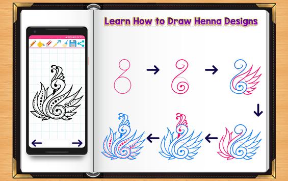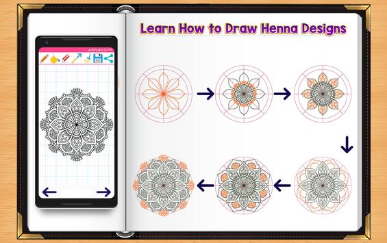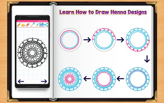 Henna Design and Tattoo drawing & coloring application will show you how to draw beautiful henna tattoo with easy to follow, simple step by step drawing instructions. The following tutorial will guide you through the steps with easy geometric shapes, letters, and numbers.