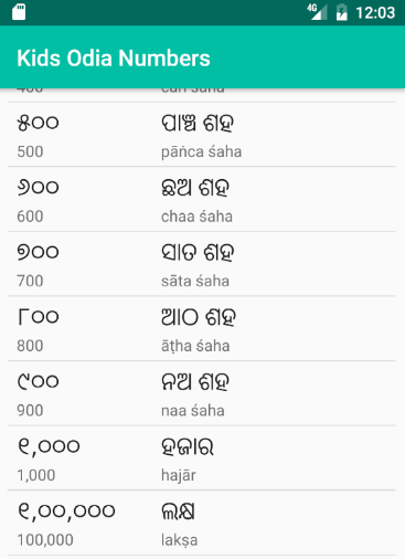 This app provides easy interface to learn Odia number system