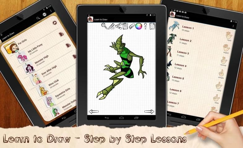 The essence of Ben 10 Drawing app is very simple. First choose an interesting image. And then - repeat all the steps of the instructions, creating the whole picture gradually. Draw anywhere: at home on paper, on the blackboard in school or in a notebook - just have fun! Maybe drawing seems too difficult task for you? You will be surprised how easy you can todraw Ben, Gwen and Max with the help of step by step lessons. Drawing Ben 10 games - it's the largest collection of turn-based drawing lessons. You are sure to find something that you really like write here!