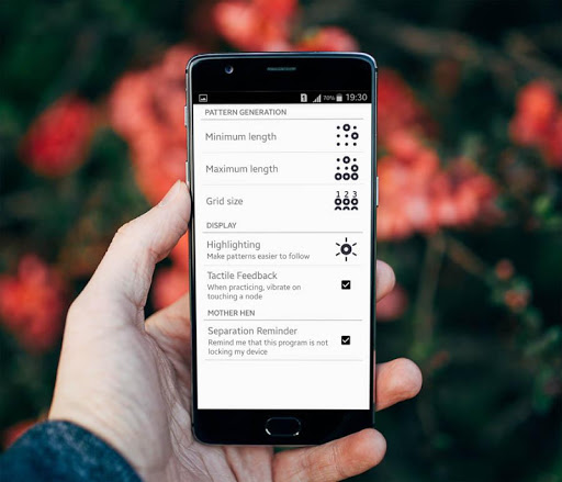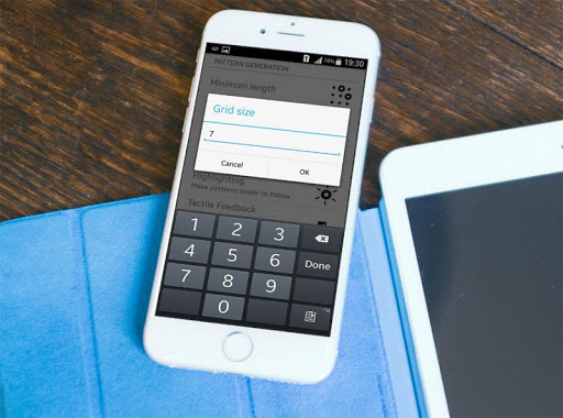 Generates the patterns setting minimum and maximum length of the pattern to be generated and many more. Settings has many options like to customize the grid be it 3x3 or 4x4 or 5 x 7 etc. Full Screen pattern lock increases the security of your pattern lock by making it 6x4. More the dots, more the probability. More securer is your phone.