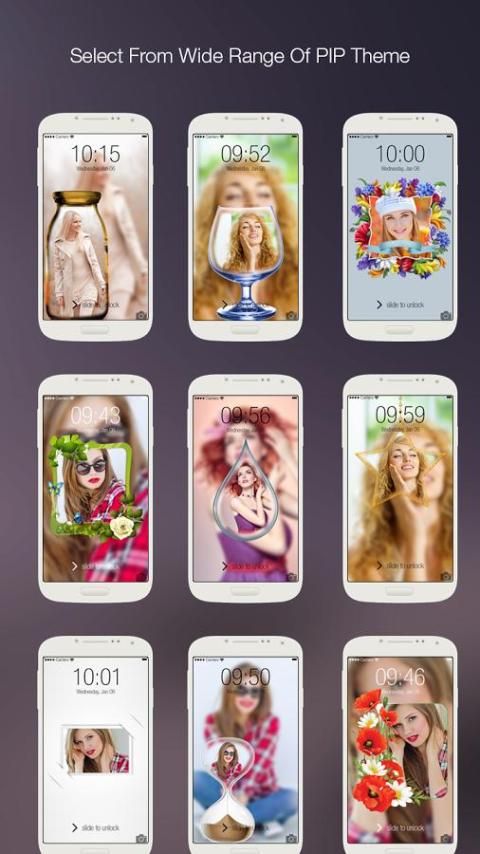 If you choose one from PIP theme, select it and choose a photo from gallery and you will picture in picture of that image with blur background. Change your looks while applying classic themes.
