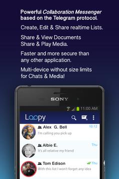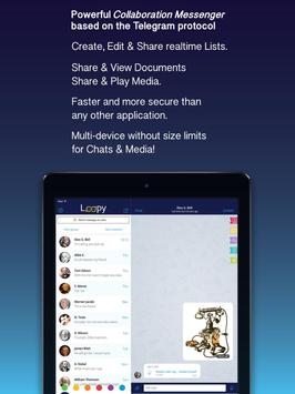 On top of a state-of-the-art messenger Loopy lets you share anything realtime, memos, todo lists, team tasks, goals, and any sort of file like documents, and even play video & audio...