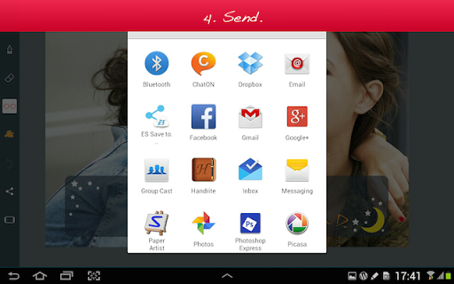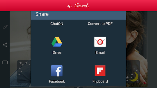 3. Add your own handwriting. Simply write with your finger, right on the touch screen. Lovely!'s special ink effects will make your handwriting look great.
