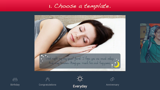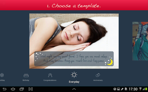 1. Choose a template (free or paid) from one of the 6 available categories: Holiday, Birthday, Congratulations, Love, Everyday, and Anniversary.