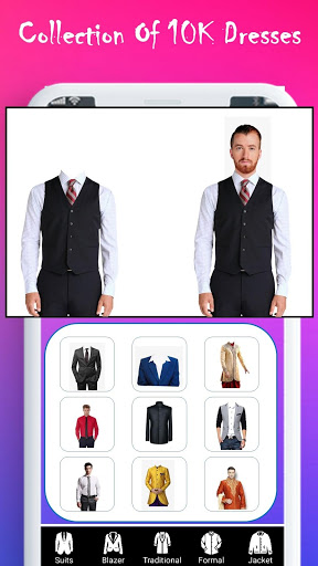 To make a man look good, make him dress nice, so we have thousands of dress photos for you like Dresses, Suits, Blazer, Traditional, Formal, Jacket Like we have given thousands of Dresses Design in this Man Smart photo editor application.