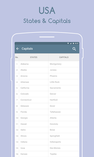 เมืองหลวงของเมือง: - ผ่านแอป ATLAS นี้สำหรับสหรัฐอเมริกาหรือแผนที่ของสหรัฐอเมริกาคุณสามารถค้นหาเมืองหลวงของแต่ละรัฐได้