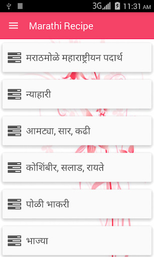 App Featuring Wide categories from Breakfast to Lunch and Starter to Dinner from marathi recipes to Punjabi Recipes and From South Indian recipes to Chinese Starters and Recipes for right Dinner / Lunch