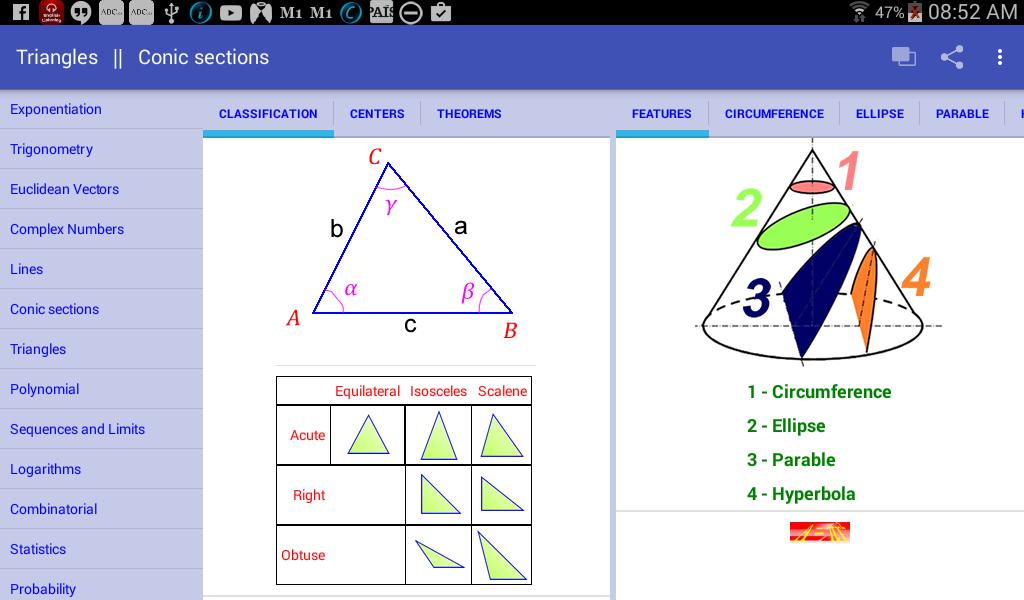 - Conic sections