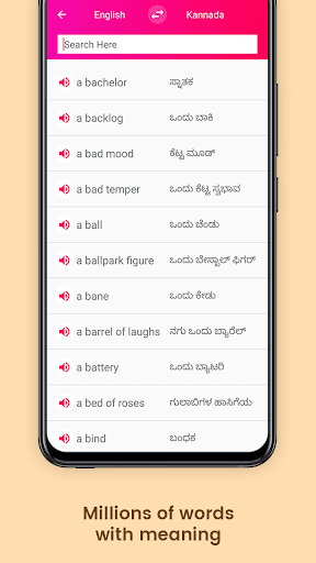 อรรถาภิธานช่วยจำความง่ายในการใช้งาน ของแอพคุณสมบัตินี้รวมอยู่ในพจนานุกรมภาษาอังกฤษเป็นภาษา Kannada หรือ Kannada เป็นภาษาอังกฤษพจนานุกรมเพื่อให้ผู้ใช้สามารถเลือกตัวอักษรใด ๆ จากรายการและคำที่เริ่มต้นจากตัวอักษรเฉพาะนั้นจะปรากฏขึ้นในรูปแบบรายการ ตัวเลือกการค้นหา Word อัตโนมัติขอคำที่เกี่ยวข้องทั้งหมดเป็นคำแนะนำที่ผู้ใช้กำลังมองหา IE การเข้าถึงคำอย่างรวดเร็วเพื่อช่วยผู้ใช้ในการค้นหาคำที่ต้องการในเวลา