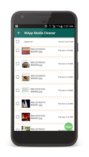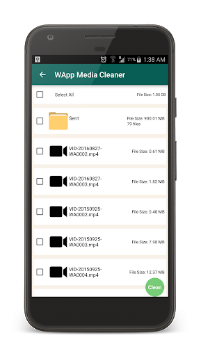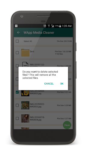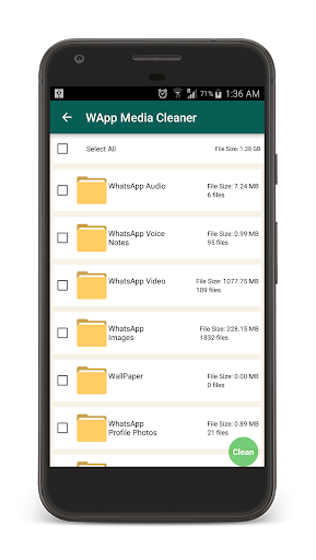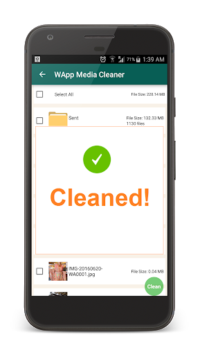 การลบหรือทำความสะอาดไฟล์ที่ใช้ร่วมกันของคุณทีละหนึ่ง สามารถน่าเบื่อและใช้เวลานาน ด้วย Whatsapp Media Cleaner ทั้งหมดที่คุณต้องทำคือเพียงแค่แตะที่ปุ่มทำความสะอาดไฟล์ที่เลือกทั้งหมดจะถูกลบออกจากที่เก็บข้อมูลภายในของคุณ!