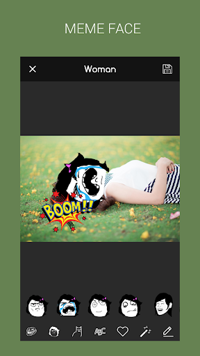 ผู้สร้าง meme มีใบหน้าหลายร้อยใบหน้าเพื่อสร้าง meme จากแกลเลอรี่หรือเซลฟี่กล้องเขียนข้อความตลก ๆ เกี่ยวกับภาพถ่ายด้วยตัวอักษรหรือเพิ่มข้อความการ์ตูนจากแอพ