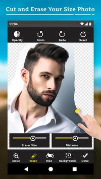 Take selfie or select your gallery photo. Set your face with the suit you selected. Position it. Set ok. Erase wanted background with the help of eraser. For quick erase, use auto eraser.