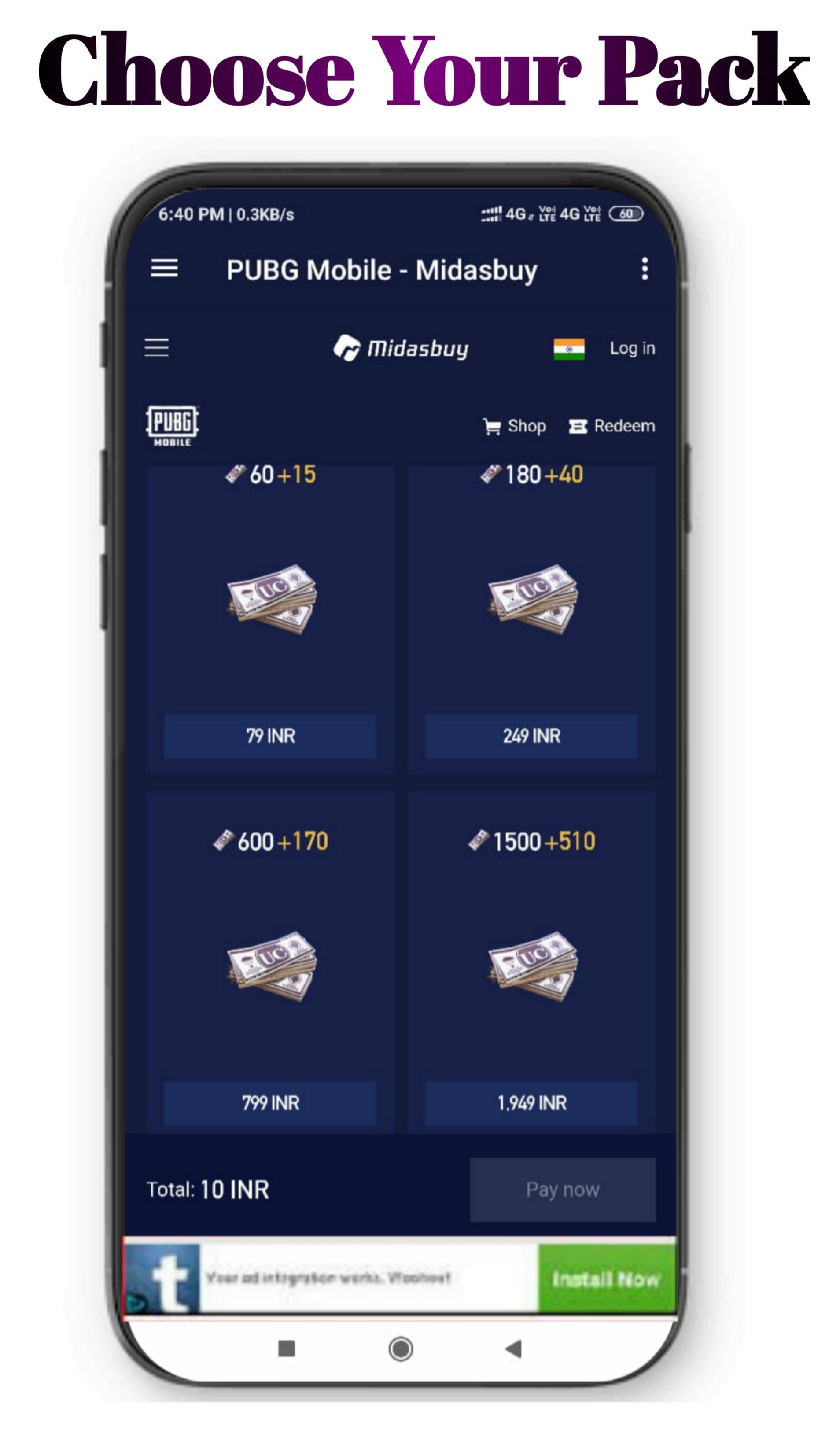 And also purchase Royale pass season 13,you get 660 UC in your account while purchasing in game directly but you will get 770 UC instead of 660. You will get extra UC in our app. Or in lite version as well.