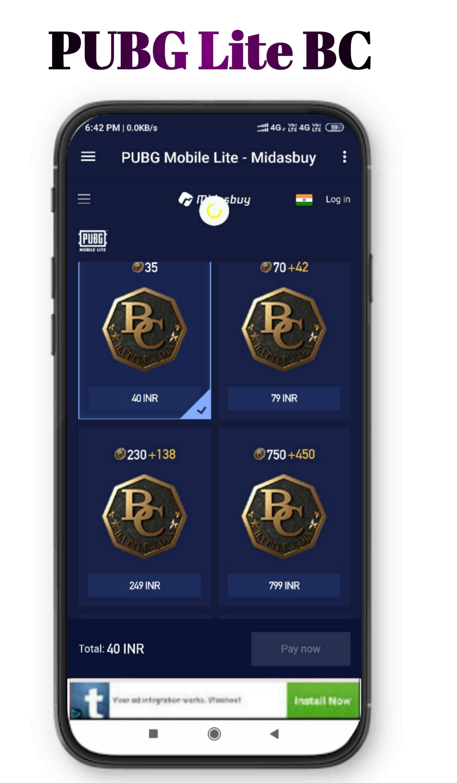 - Tubg lite BC instantly to your account.