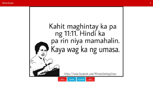 Here's a collection of Sen. Miriam Santiago pick up lines you can share with your friends, enemies, neighbors and loved ones.