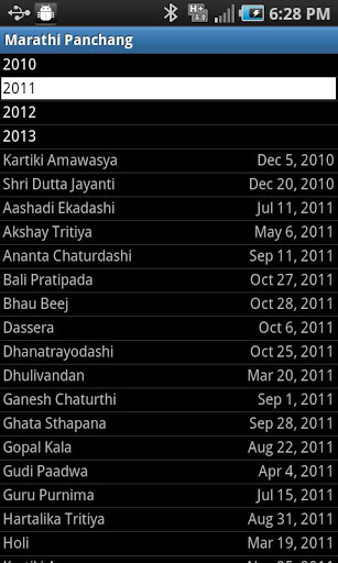 Panchang is Hindu calendar based on position of the Moon with respect to the sun Panchang consists of five elements of time namely, Vara, Tithi, Nakshtra, Yoga and Karana. Mobile Panchang addresses Tithi and Vara elements. Tithi is time taken by the Moon to increase its angular distance from the Sun by 12 degrees. There are 30 Tithis in a lunar month, i.e. time Moon takes to complete a revolution around the Earth. When ecliptic longitude difference between the Sun and the Moon is zero degrees it is Amavasya Tithi and when this angle is 180 degrees it is Purnima Tithi. A Tithi on a Solar day is determined by calculating the ecliptic longitude difference between the Sun and the Moon at Sunrise at a give location on the Earth. Mobile Panchang uses sunrise time in Mumbai, india This is same as Indian Standard Time. One lunar revolution lunation is a month in Hindu Calendar and there are twelve months in a year except when a adhik additional month is added for synchronizing with the Solar cycle. There is a concept of Kshay month but it occurs rarely where as there is a fixed 19 year cycle for adhik month insertion. There are two conventions for mapping months on Tithis; one starts a month after new moon Mobile Panchang calls this Marathi Panchang and other starts a month after full moon Mobile Panchang calls this Hindi Panchang. Mobile Panchang enables easy navigation from Solar Year to a specific Lunar monthpakshtithi. A list of major festivals with dates enables you to look up dates for Diwali and plan your celebration with a slide of a finger.